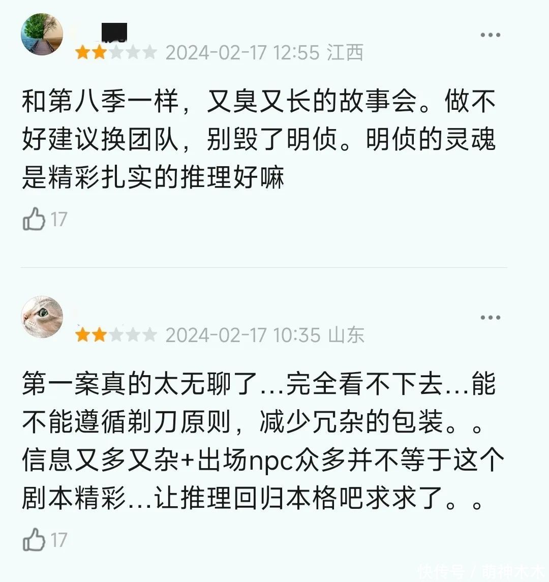 这一波公论也径直将《大捕快》节目推向公论的风云之中,最新一季的节目原来就差评如潮,被好多不雅众吐槽推理依次大打扣头,原来作念的很好的推理探案节目,刻下成了又臭又长的故事会。